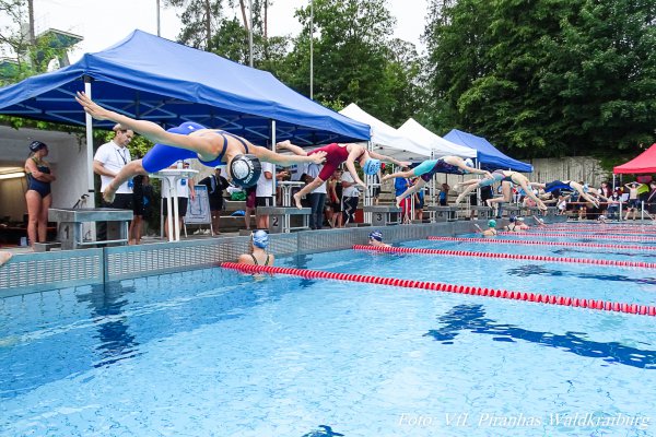 Auch die jüngsten Piranhas konnten beim Vereinsschwimmen erste “Wettkampfluft” schnuppern.Endlich wieder einen Wettkampf bestreiten - das ist für viele Schwimmerinnen und Schwimmer der sehnlichste Wunsch nach der schier endlosen Corona-Pause. Um möglichst vielen Kindern die Möglichkeit zu bieten, sich wieder mit anderen messen zu können, ergriffen die Piranhas des VfL Waldkraiburg selbst die Initiative und veranstalteten am 17. Juli ein Einladungsschwimmen im Waldbad.