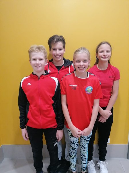 Das Waldkraiburger Schwimmteam bei den Bayerischen Meisterschaften (v.l.): Adam Verebi, Daniel Verebi, Hanna Mitterer und Simone MatschiBei den Bayerischen Jahrgangsmeisterschaften vom 8. bis zum 10. Oktober in Regensburg ermittelten die schnellsten Nachwuchsschwimmerinnen und -schwimmer des Freistaates die Besten in ihren Reihen. Trotz einer bekanntermaßen sehr schwierigen Saison mit vielen Trainingsausfällen nahmen auch vier “Piranhas” aus Waldkraiburg auf ihren Paradestrecken teil.