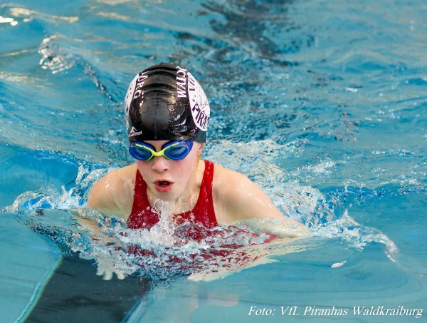 Hoch konzentriert und schnell unterwegs waren die jüngeren “Piranhas” des VfL Waldkraiburg (hier Sophie-Luise Maierhofer) in MünchenWettkampfsport in familiärer, kinderfreundlicher Atmosphäre bot das 26. Internationale Schwimmfest des MSV München am 30. April für junge Schwimmerinnen und Schwimmer aus München und Umgebung. Die “Piranhas” des VfL Waldkraiburg waren mit von der Partie und zeigten hervorragende Leistungen.